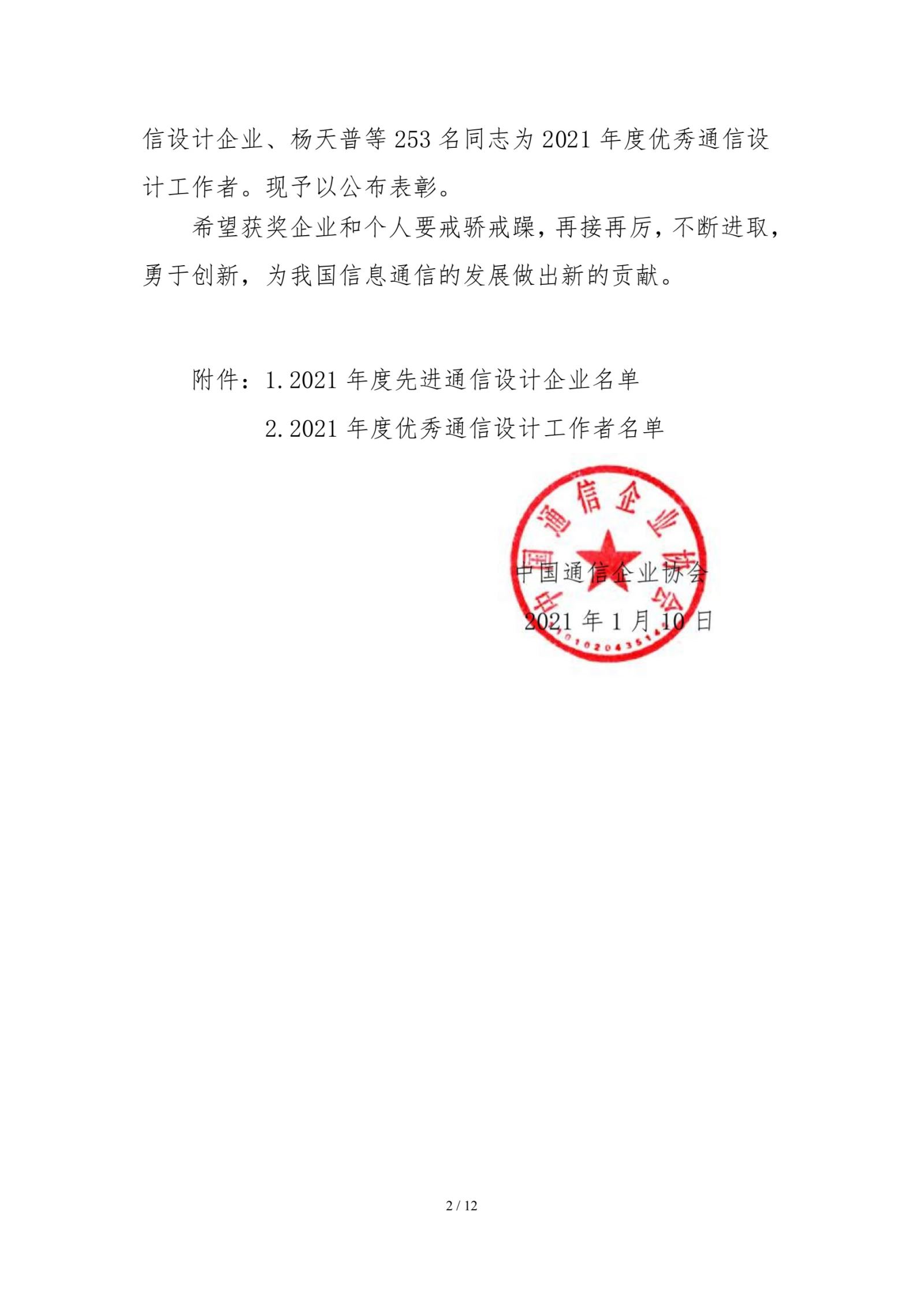 关于表彰2021年度“先进通信设计企业”和“优秀通信设计工作者”的决定