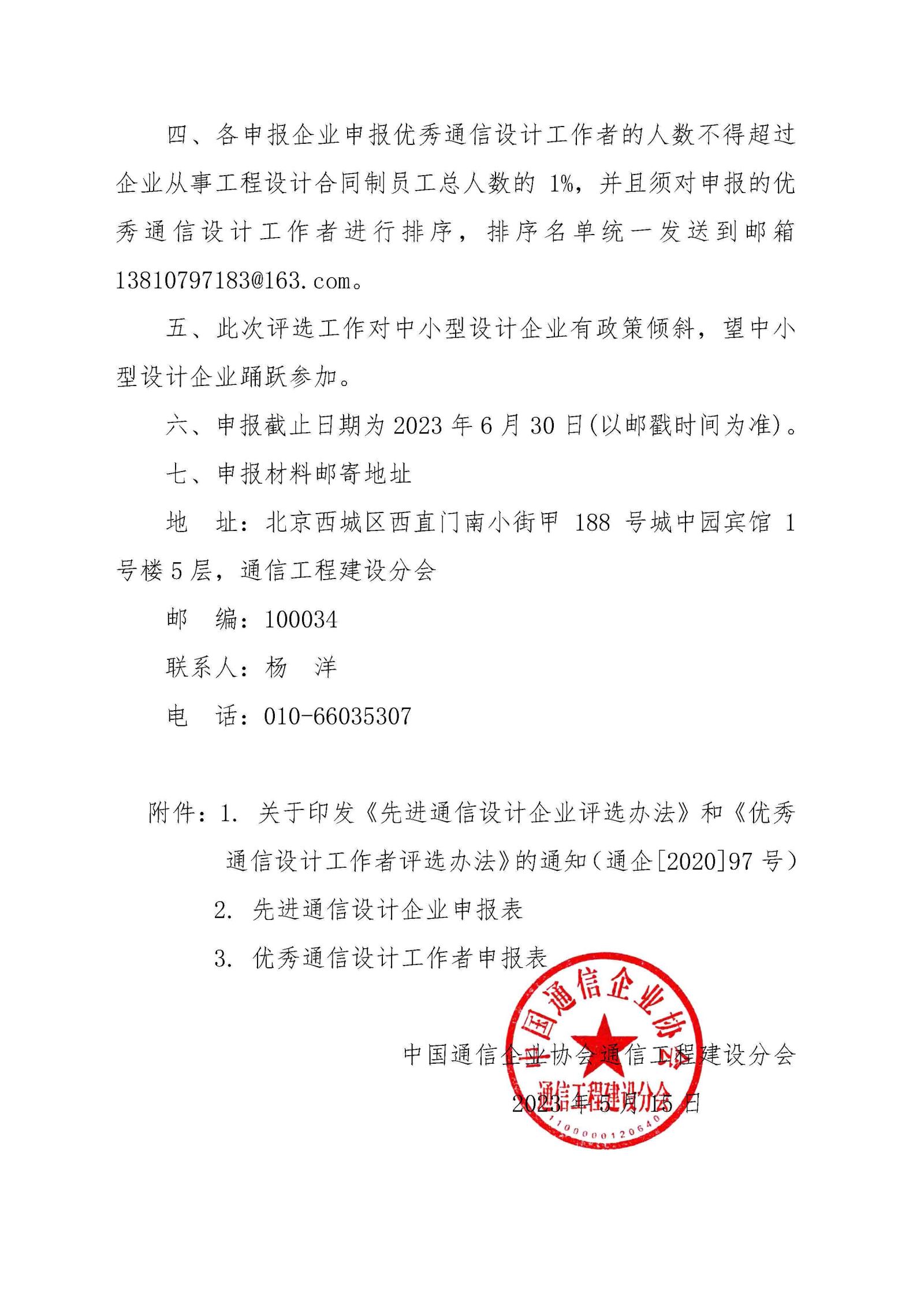 关于开展2023年度“先进通信设计企业”和“优秀通信设计工作者”评选的通知