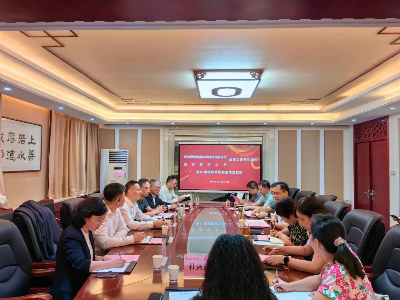2024年8月29日,赛尔通信与西安邮电大学签署战略合作协议,并共建“AI运维联合实验室”。西安邮电大学校长卢光跃,赛尔通信董事长房宗训、高级副总裁官国智见证签约,西安邮电大学副校长巩红与赛尔通信高级副总裁刘济宁代表双方签约。