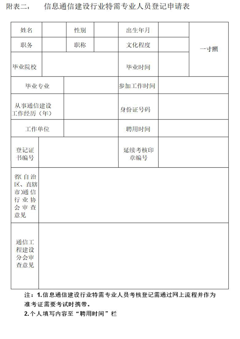3、考试时需携带本人身份证原件及自行打印好的“行业特需专业人员登记申请表”(格式见附表二)。