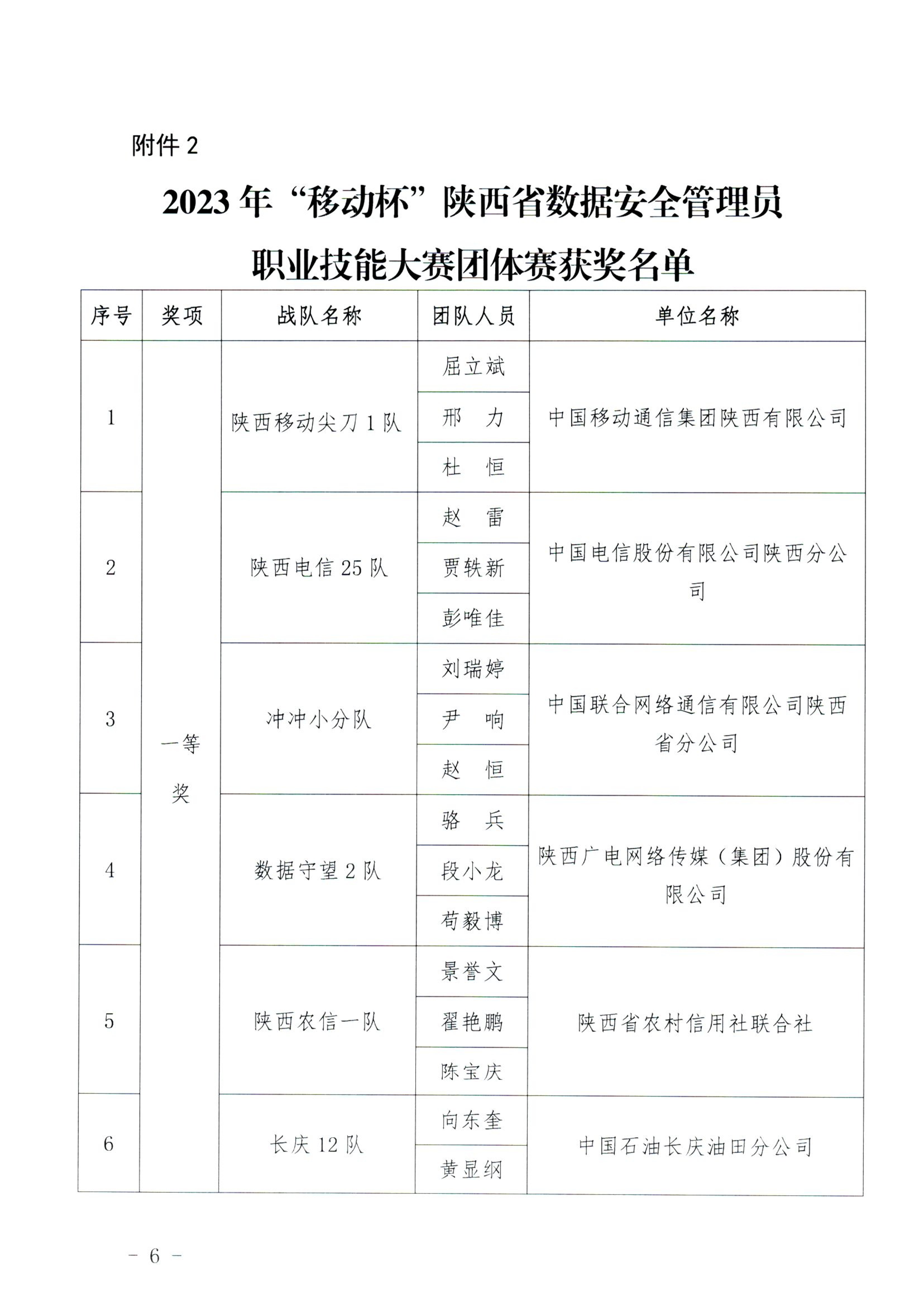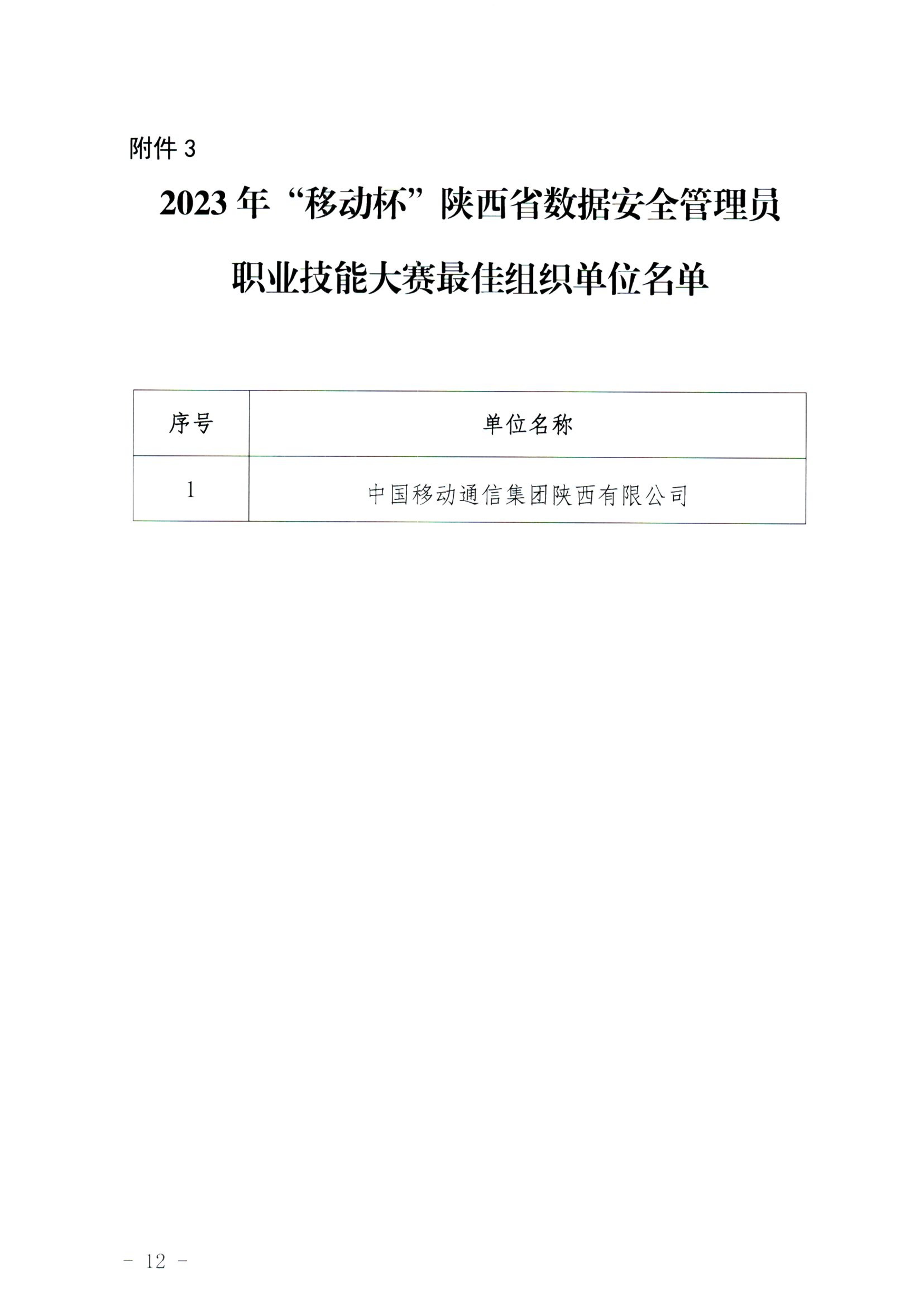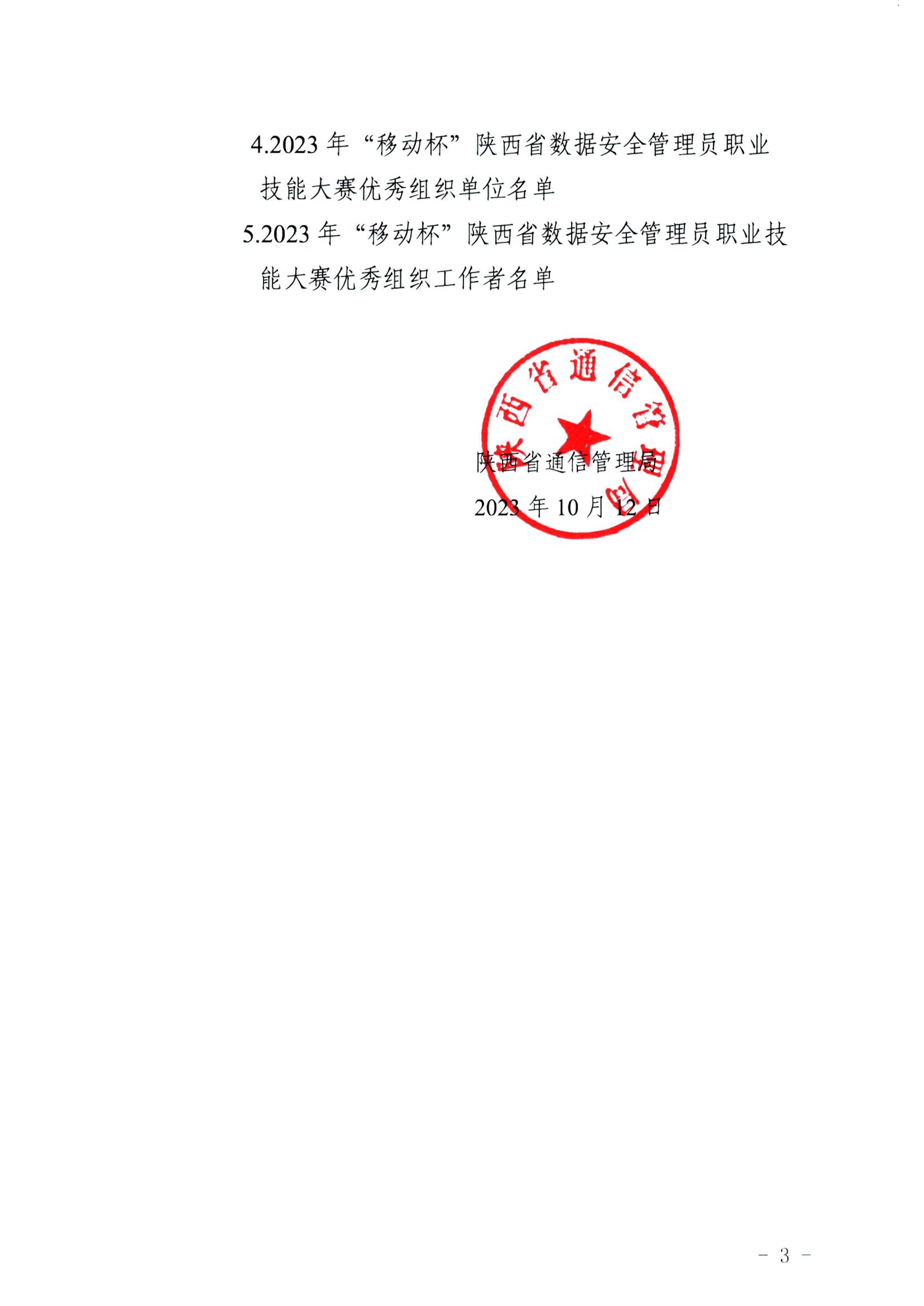 关于2023年“移动杯”陕西省数据安全管理员职业技能大赛获奖名单的通报