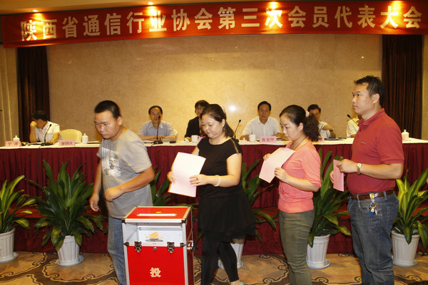大会听取审议并通过了《陕西省通信行业协会第二届理事会工作报告》、《陕西省通信行业协会第二届理事会财务报告》和修改后的《陕西省通信行业协会章程》及《陕西省通信行业协会会员及会费管理办法》,选举产生了新一届理事会。第三届理事会由53名理事组成。随即召开的三届一次理事会全体会议以无记名投票方式,选举张克中为协会理事长,司芙蓉、赵大春、谢国庆、翟清泽等4位理事为副理事长,王平凡为秘书长,第三届常务理事会由16人组成。