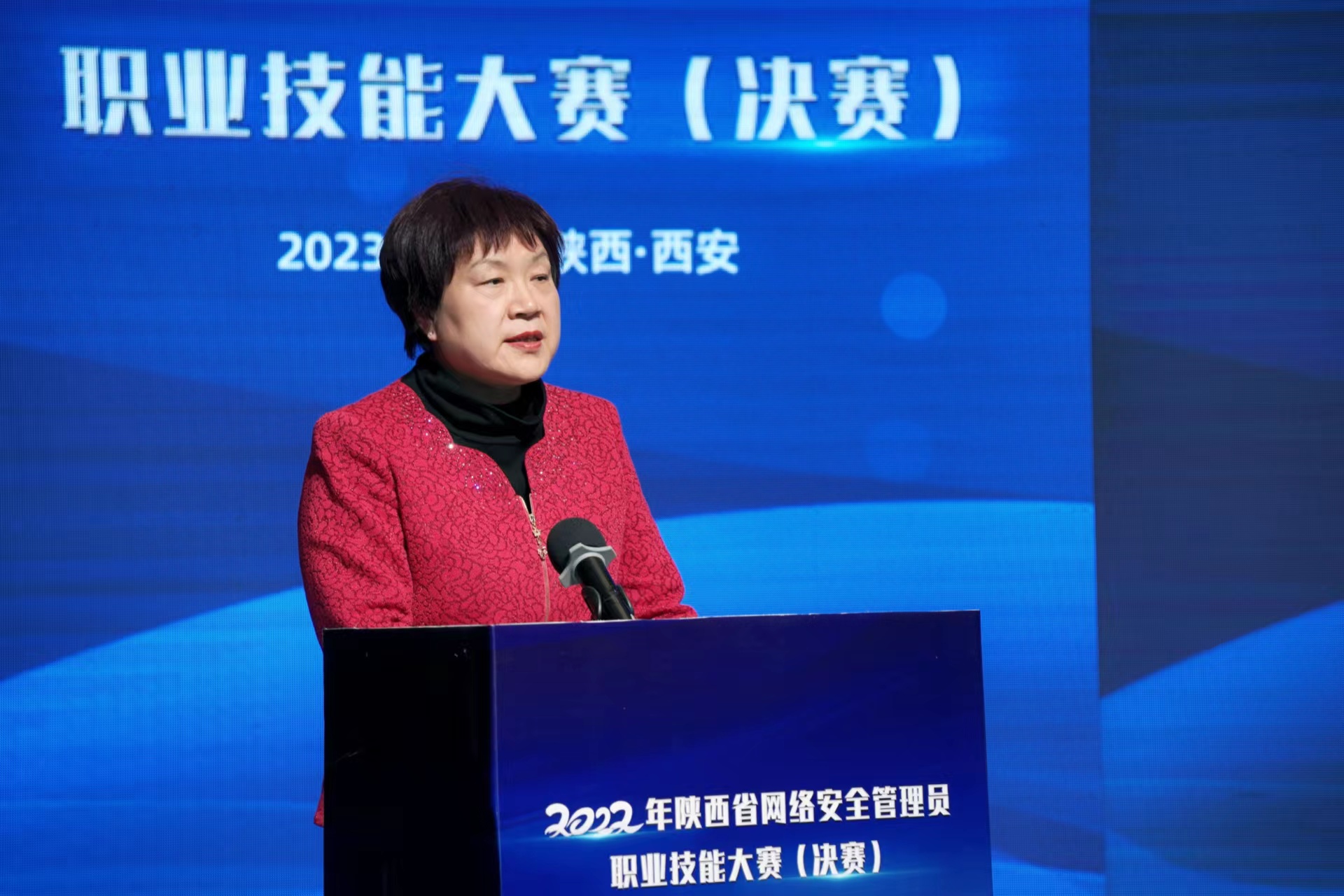 2月23日,2022年陕西省网络安全管理员职业技能大赛圆满落幕。陕西省通信管理局党组书记、局长高彩玲,党组成员、副局长杜建龙,各基础电信企业负责同志,陕西省人力资源和社会保障厅、陕西省公安厅、陕西省水利厅、中国人民银行西安分行、陕西省兵器工业管理局、中国铁路西安局集团有限公司、中国石油长庆油田分公司、西安国际医学投资股份有限公司、陕西省信息通信行业协会、陕西省通信学会、陕西省互联网协会、中国信息通信研究院、陕西省水务集团秦之泉品牌运营有限公司大秦之水品牌公司等相关单位部门负责同志观摩决赛现场,并出席大赛闭幕式暨颁奖典礼。