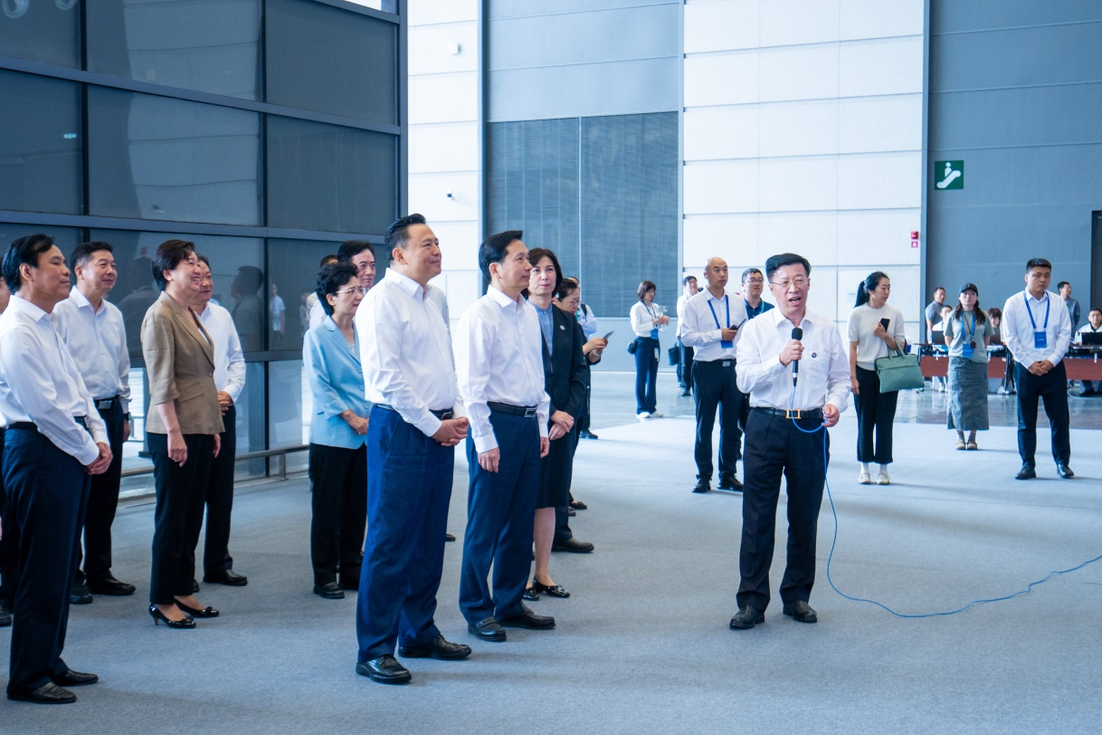 (图为全国总工会党组书记、副主席、书记处第一书记、大赛组委会主任徐留平(前排左一),陕西省委书记、省人大常委会主任赵一德(前排左二)等领导同志观摩比赛)