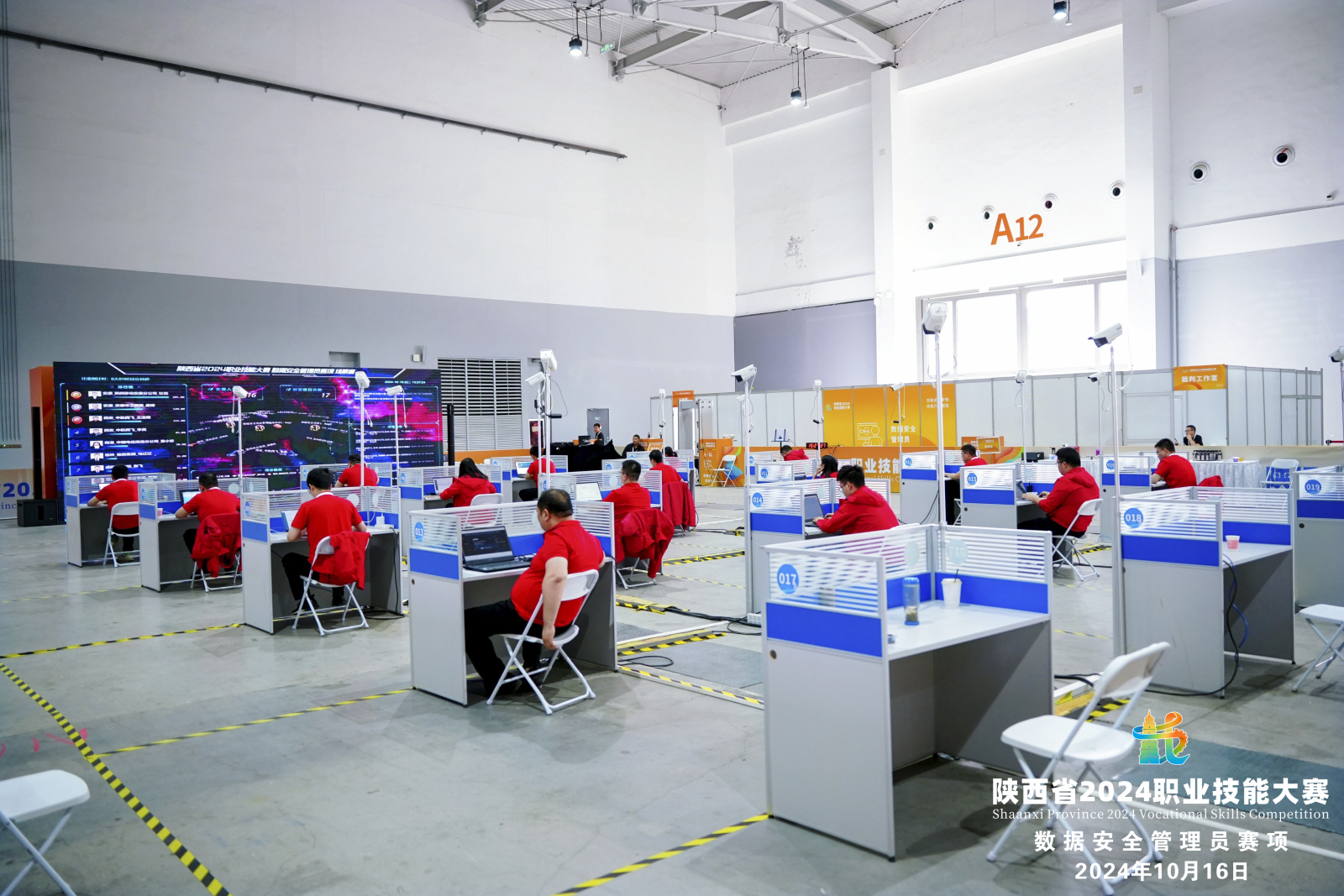 其中,数据安全管理员赛项由陕西省通信管理局承办,我会协助完成。来自10个地市的16位选手参加比赛。 赛项紧扣数据安全技术技能应用主题,紧密结合了企业实际的生产应用场景,突出了高技能实战。通过赛题的设置,综合检验选手的理论知识和实践操作,考验选手的综合技能水平;在场景搭建时,结合网络和数据安全保障能力的构建要求、企业实际安全运营需求和场景,进行了专项设置,高科技、全方位的赛事保障成为一道亮丽的风景线,惊艳全场。