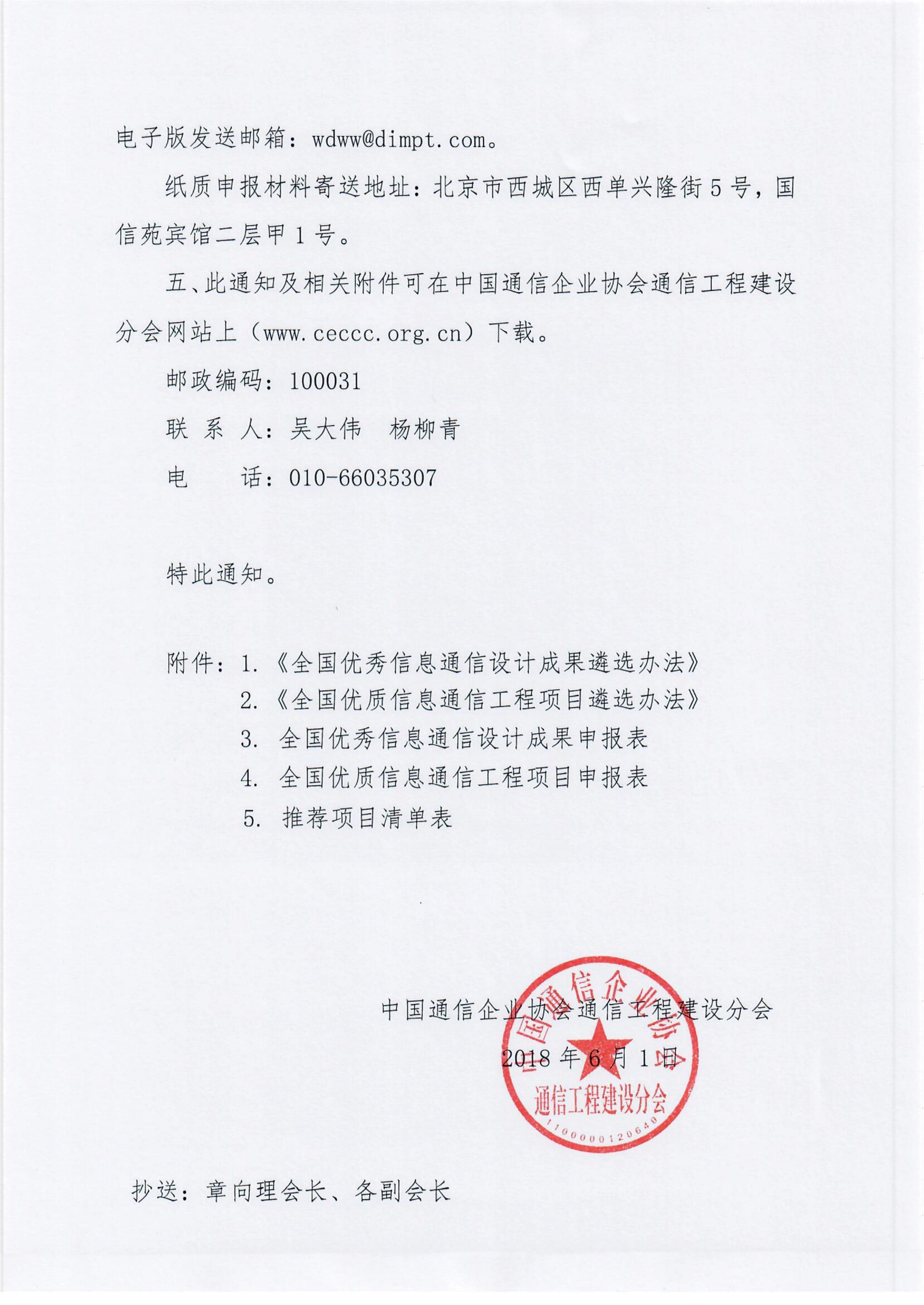 关于公布2018年度全国优秀信息通信工程建设项目遴选结果的通知