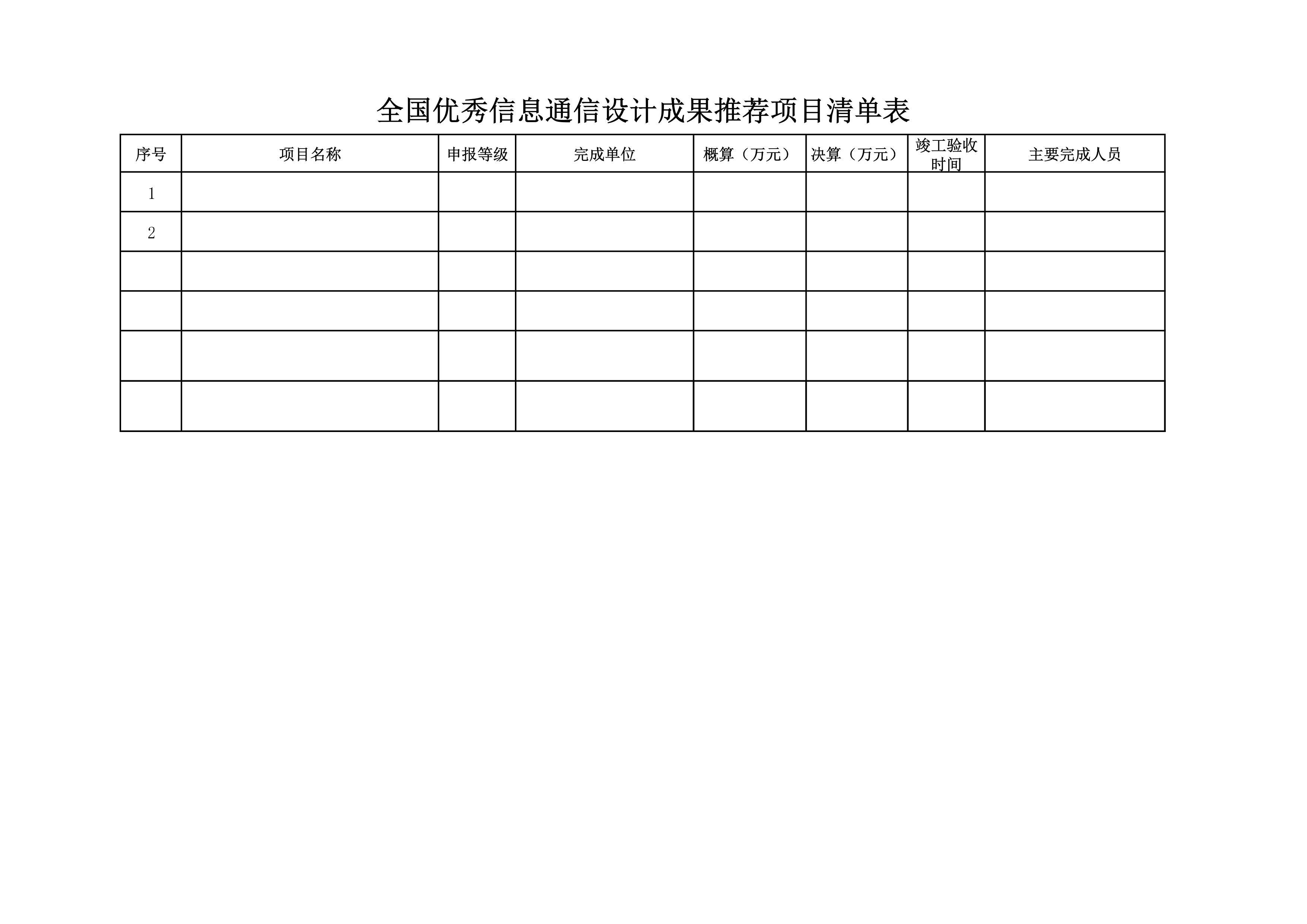 全国优秀信息通信设计成果申报表